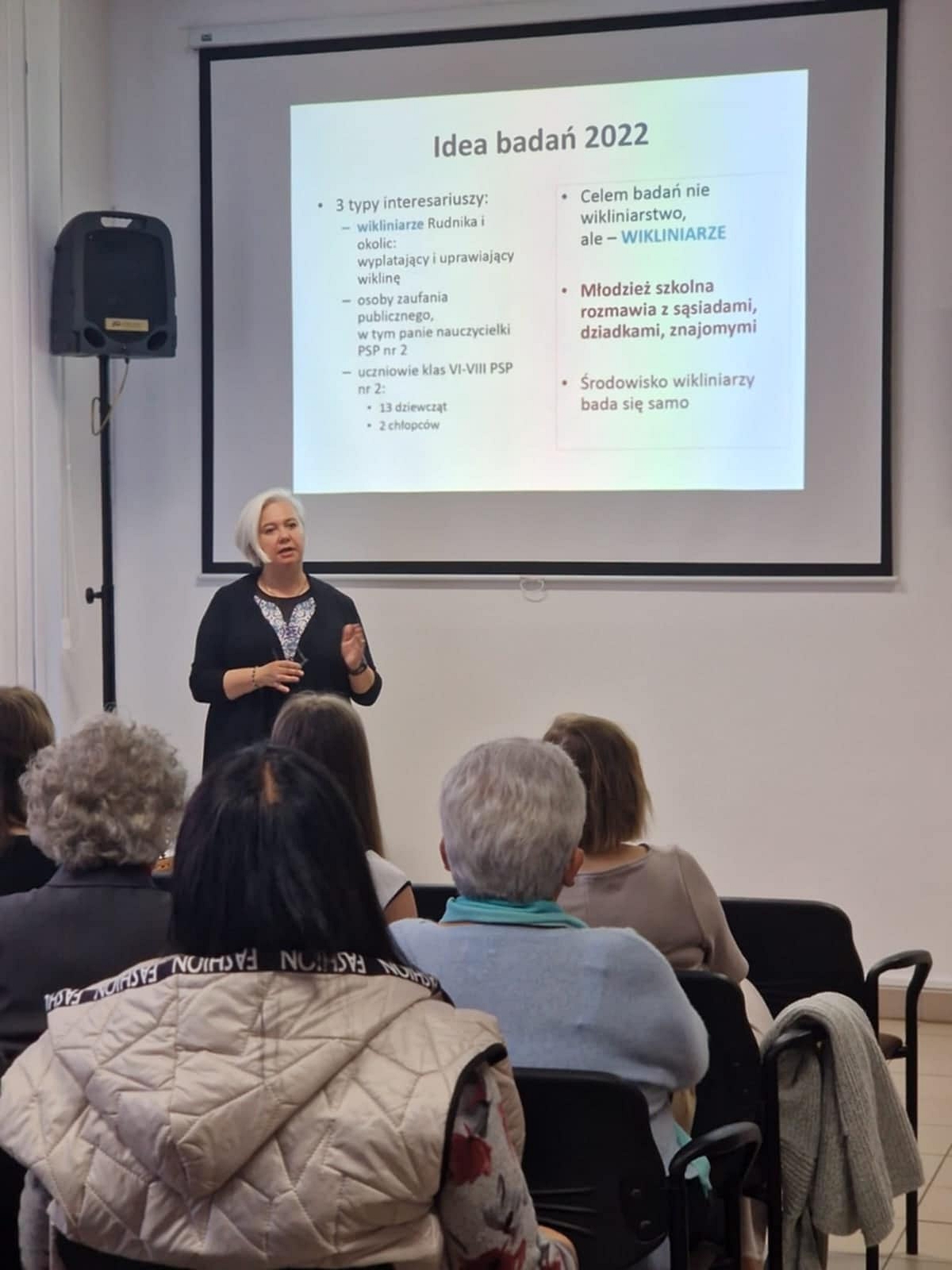 W swoim wystąpieniu Pani Profesor zaprezentowała wyniki badań terenowych dotyczących wikliny jako filaru tożsamości lokalnej i regionalnej, prowadzonych w latach 2022 i 2025. Ich celem było uchwycenie miejsca wikliny, plecionkarzy oraz wydarzenia „Wiklina” w systemie wartości mieszkańców i turystów odwiedzających Rudnik nad Sanem i okolice. Oparte zostały na metodzie autoetnografii, a w rolę młodych badaczek wcieliły się uczennice zeszłorocznej klasy VII i VIII Publicznej Szkoły Podstawowej nr 2 w Rudniku nad Sanem.